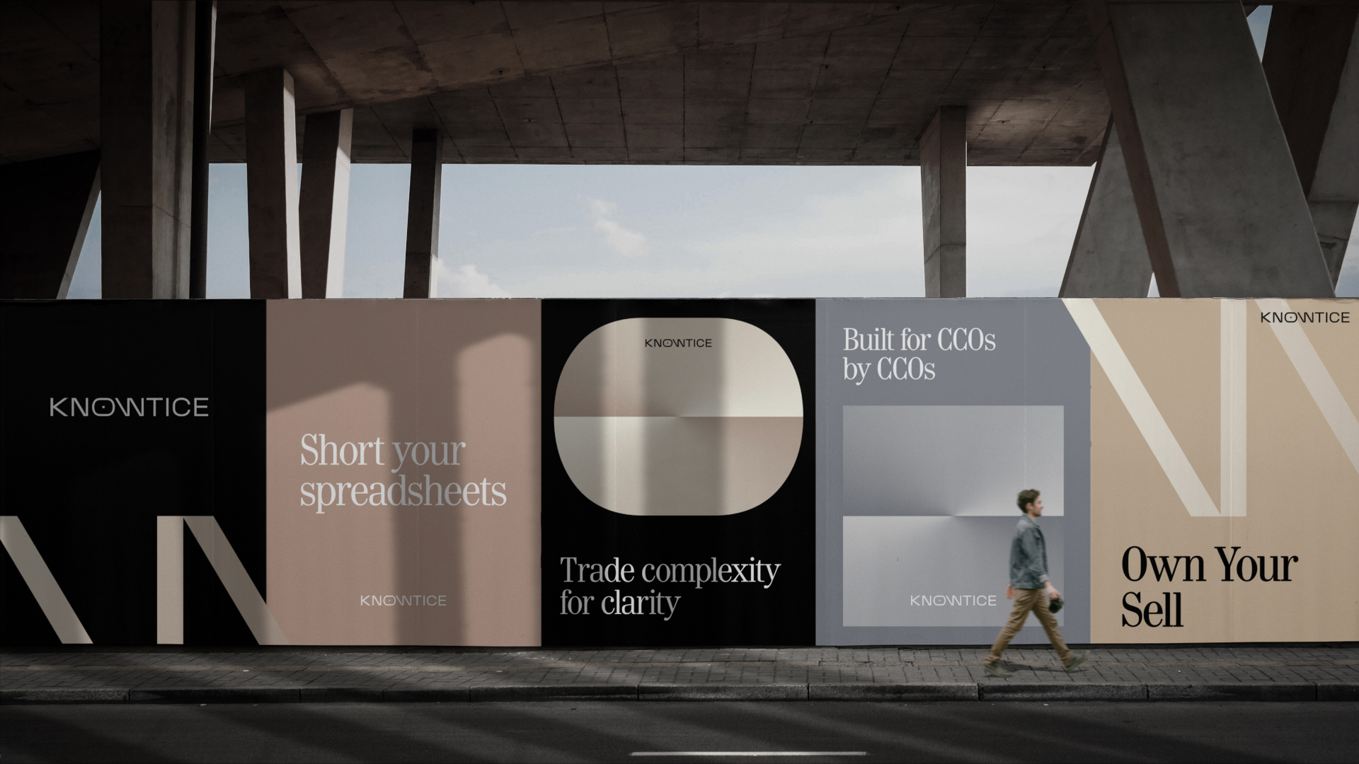 In a crowded fintech and SaaS landscape, Knowtice needed a brand that conveyed authority and clarity without blending into the familiar. The goal was to build an identity that reflects expertise and trust while standing apart from typical digital-first brands. The design centers on a rich palette of copper, gold, and deep browns. These tones create warmth and substance, evoking stability and control while signaling confidence in a complex regulatory space. Subtle gold accents add refinement, projecting a premium yet composed presence. At its core is the Knowtice icon, drawn from the letter O and shaped to suggest an eye. This symbol of awareness and insight is paired with a precise, geometric wordmark that communicates strength with restraint. The result is a brand identity that feels modern and timeless, quietly powerful, and built to inspire trust.
