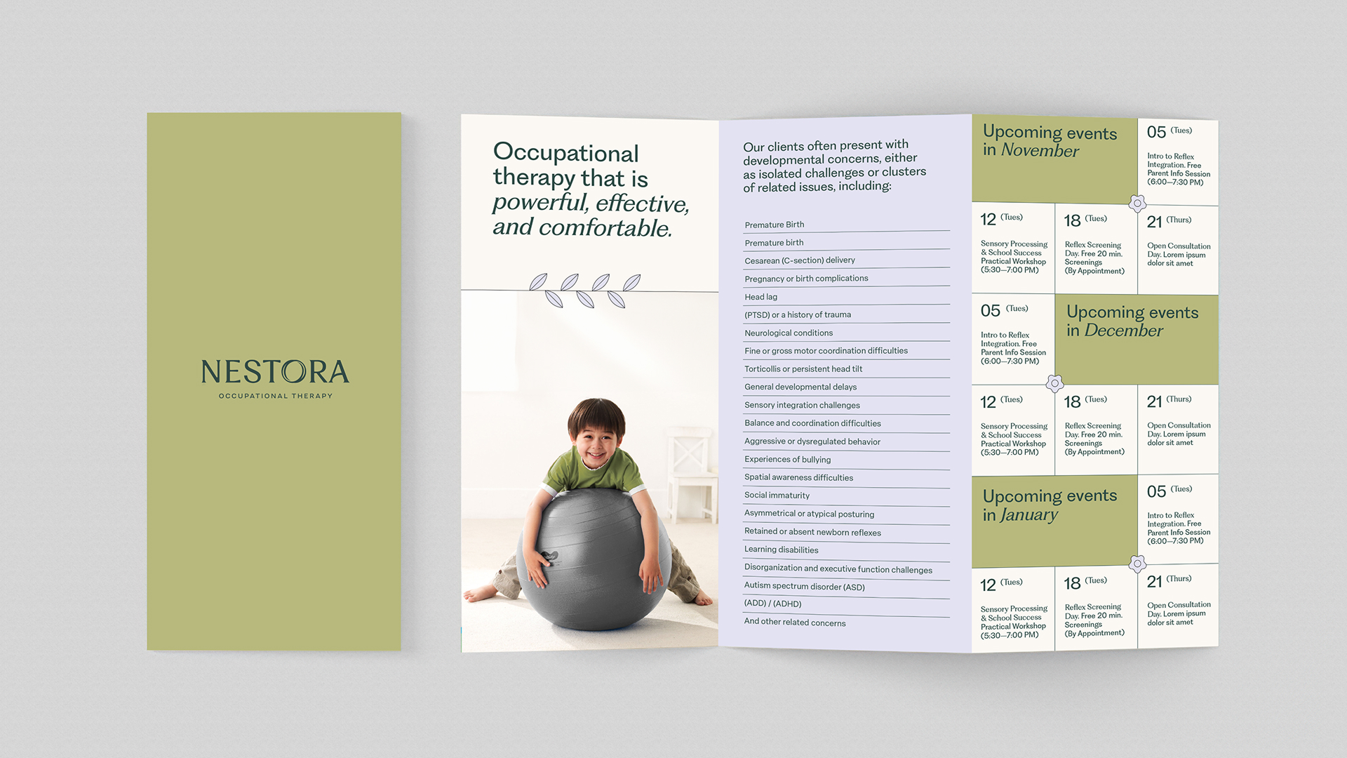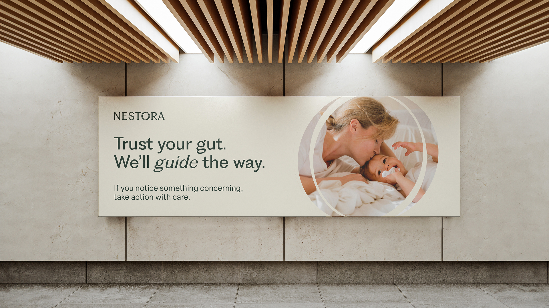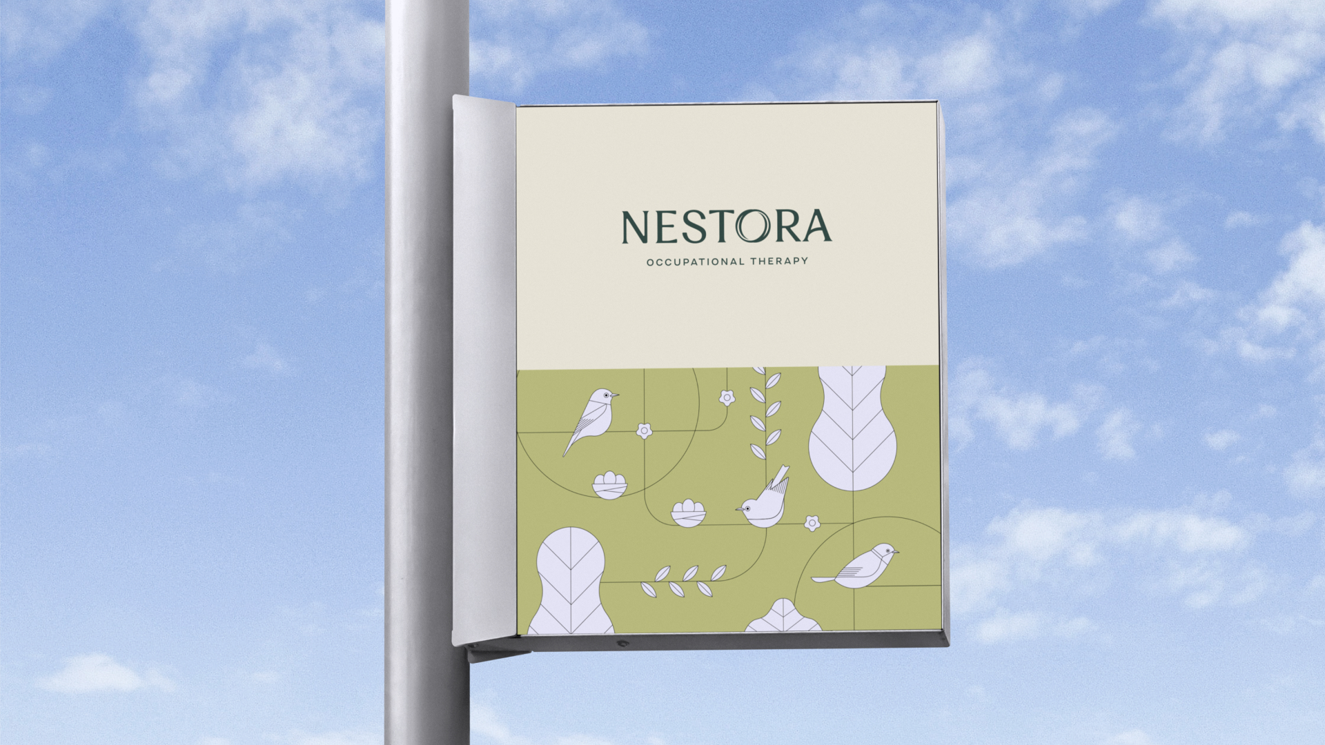 Nestora partnered with day3 to create a brand identity that balances professional structure with organic warmth, reflecting a brand that mothers can trust. The design evokes the quiet strength of a nest through warm, gentle colors and approachable typography like Fragment Sans and Elza Text. The logo is soft yet solid, conveying trust and credibility while the icon represents the nest, cradle, and the return to the original flow of the body.