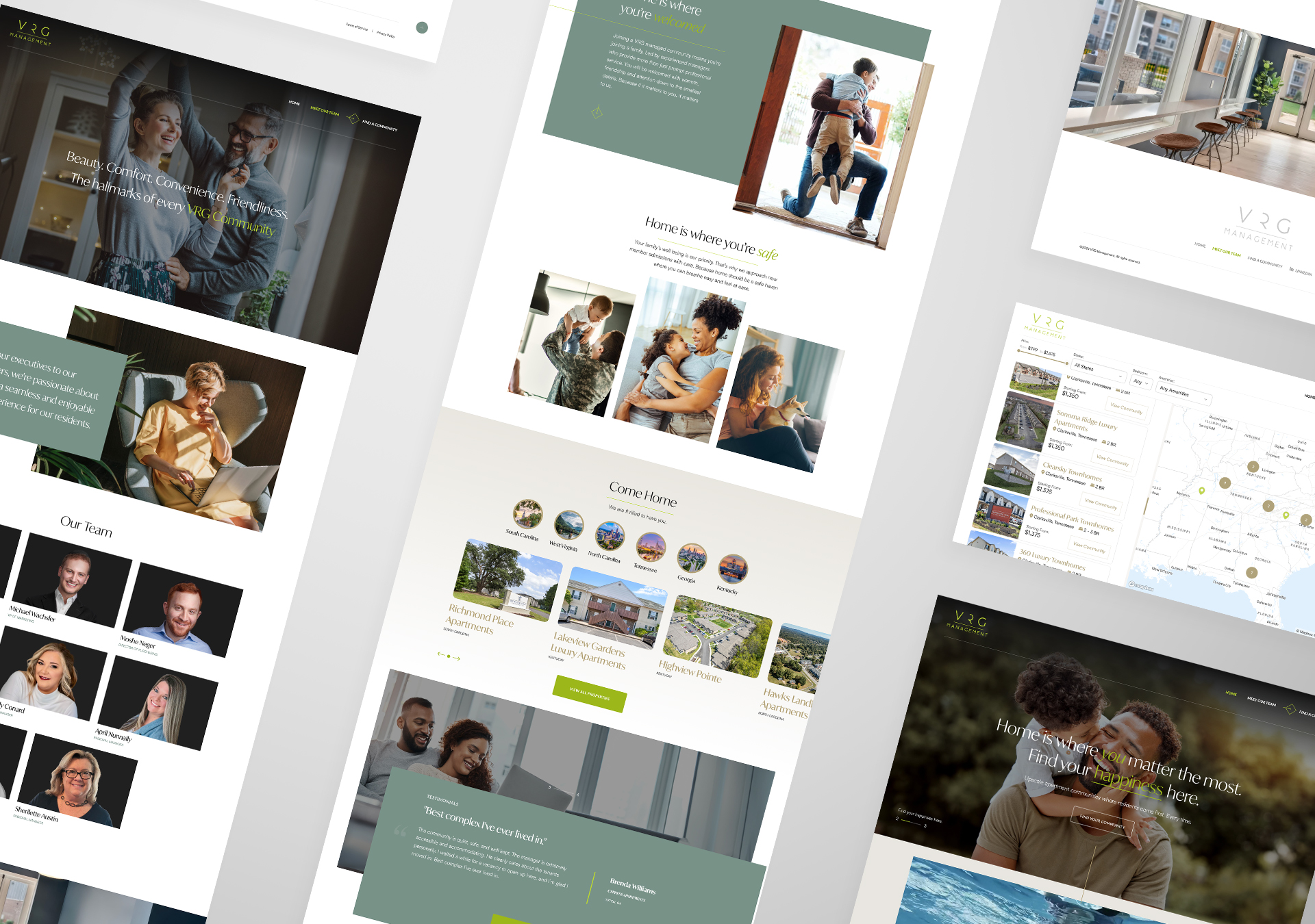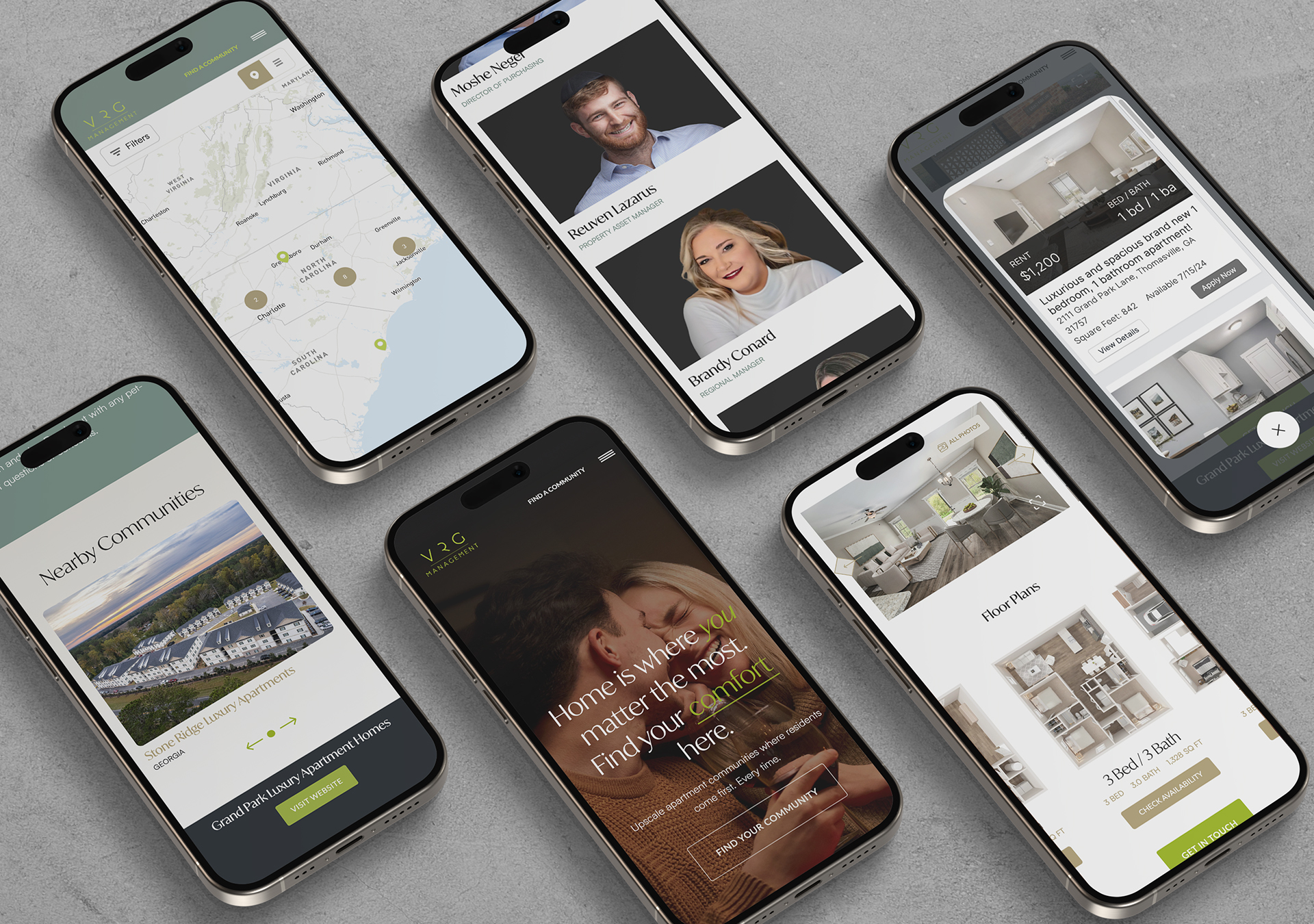 VRG Management's warm touch in the property management space was turned it into a brand messaging strategy that was leveraged to engage prospective tenants on an emotional level rather than on an intellectual level. Intuitive technology created a seamless user experience starting with a fully custom interactive map of the entire US displaying every VRG Management property. The custom built CMS ties into the map so you can filter by pricing, state, and even a specific amenity. The map currently houses 40 properties and it's growing. We created integrations with AppFolio, Sightmap Solutions, Mapbox, Matterport, and Make. All built on Webflow. This was a heavy lift and we showed our ability to tackle the most complex website builds possible.